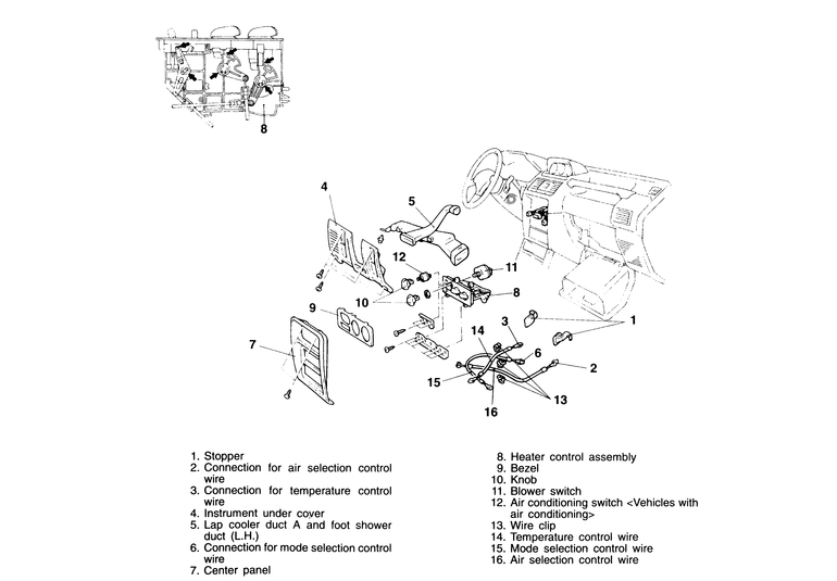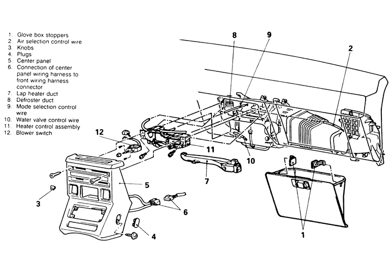 | Fig. 2: Heater control assembly component locations — 1987–95 Pick-ups |