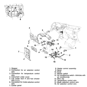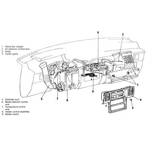 | Fig. 4: Heater control assembly removal and installation components — 1992–95 Monteros |
