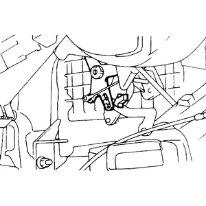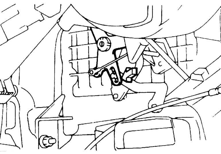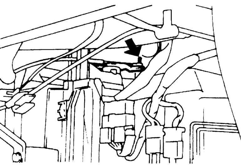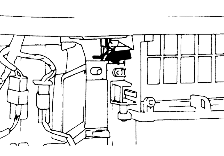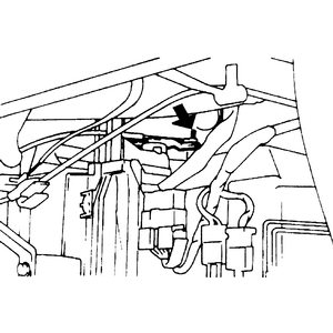 | Fig. 8: Press the air selection damper lever inward (the direction shown by the arrow) to attach the air selection control cable — 1992–95 Monteros |