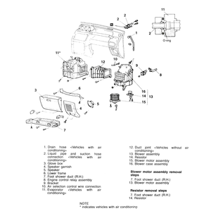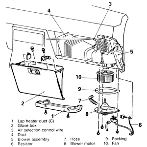 | Fig. 3: Blower motor assembly and component location — 1983–89