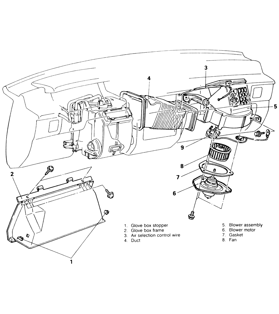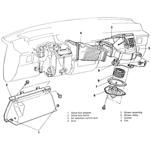 - Remove the glove box stopper and unbolt the glove box frame.