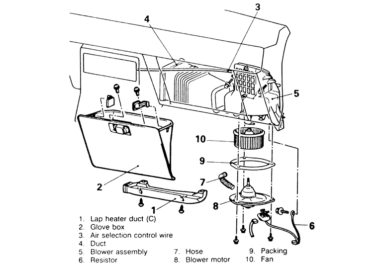 - Remove the lap heater duct under the right-side dashboard.