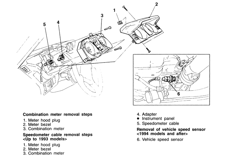 - To remove the speedometer cable (1992–93 models only) adapter, disconnect