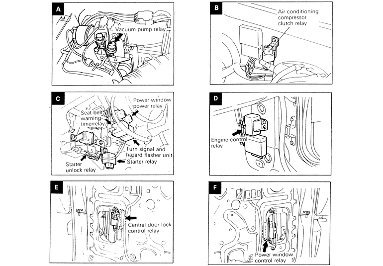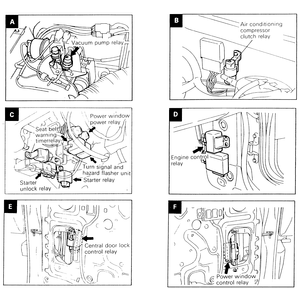 Central Door Lock Control Relay (1992–95 models): mounted in the front