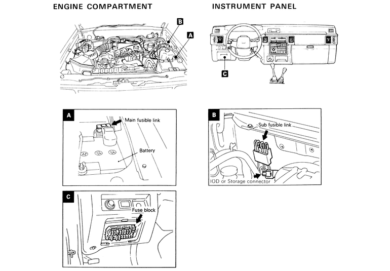 Fig. 1: Fusible link, fuse and Ignition Off Draw