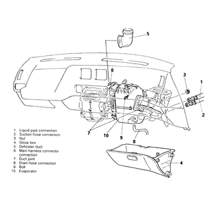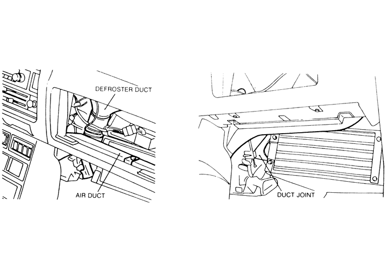 - Install the defroster duct and the small lap heater duct (behind the glove