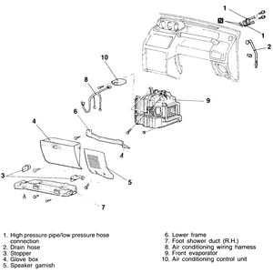 The evaporator unit assembly is made up of the A/C control unit, the upper