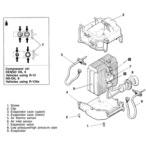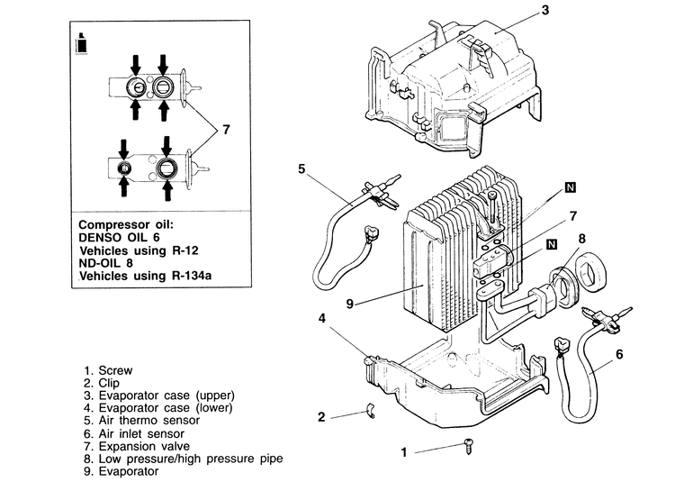 and lower evaporator case, the air thermo sensor, the air inlet sensor, the
