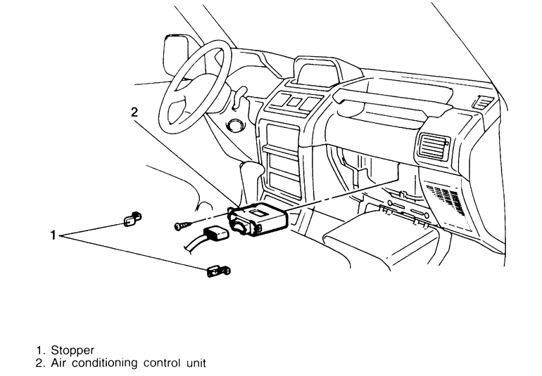 Fig. 1: Air conditioning control unit removal and installation — 1992–95 Monteros