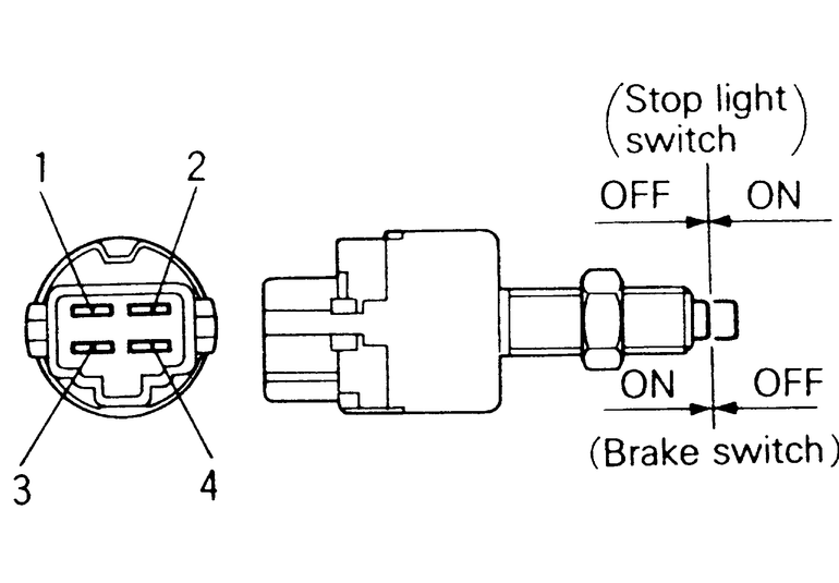 When the brake pedal is not depressed, terminals 1 and 4 should be continuous.