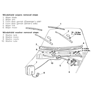 | Fig. 2: Windshield wiper and washer system removal and installation components — 1987–95 Pick-ups |