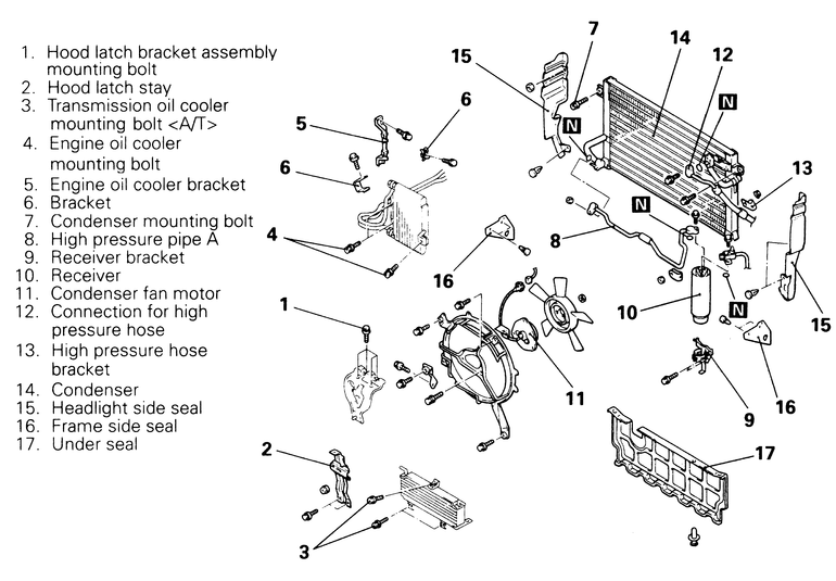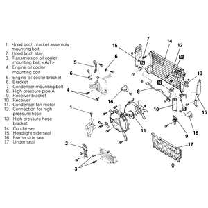 - Remove the condenser retaining bolts. Remove the condenser from the vehicle.