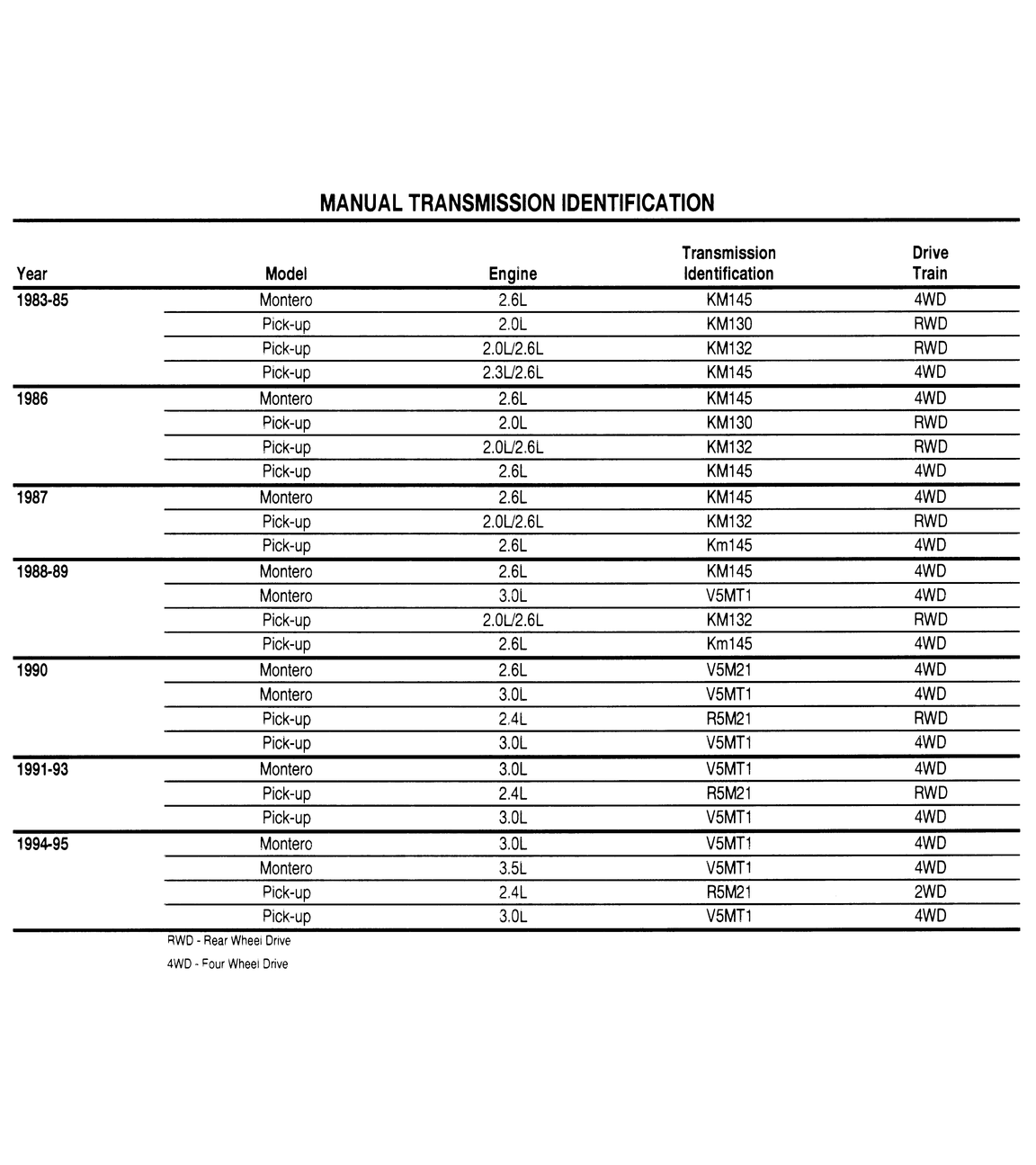 MANUAL TRANSMISSION IDENTIFICATION