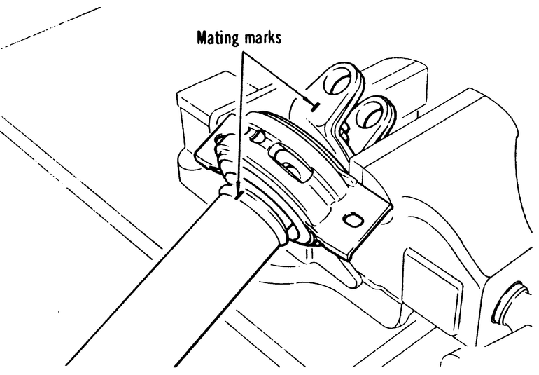 | Fig. 4: When reinstalling the universal joint yoke to the driveshaft, make sure that the matchmarks are aligned — 1983–95 Pick-ups |