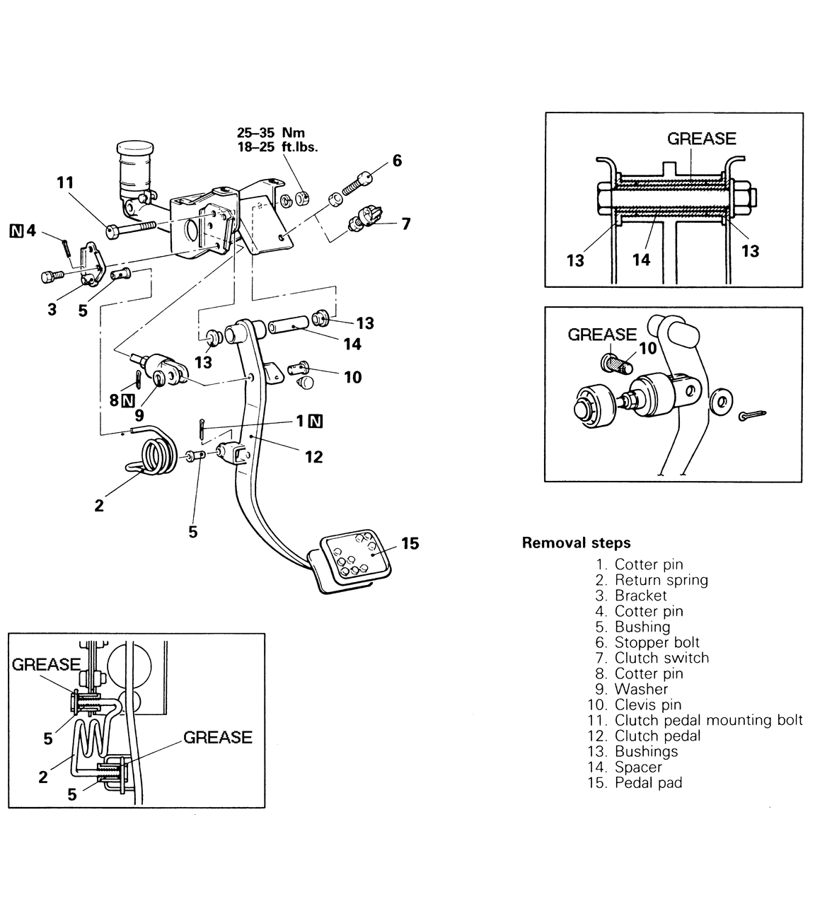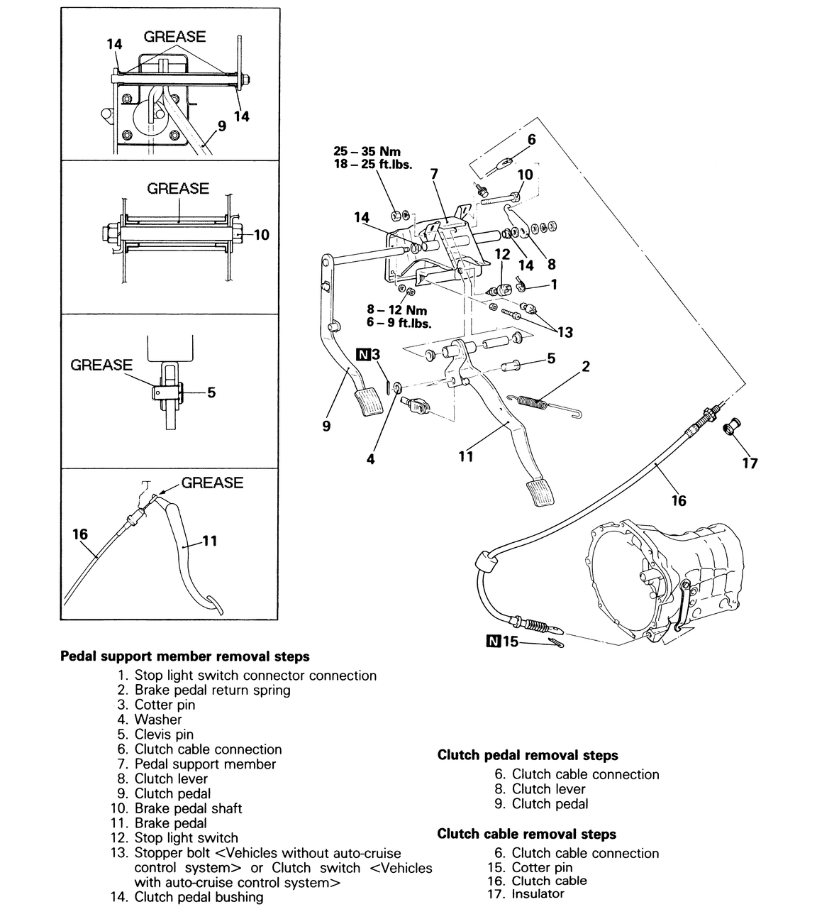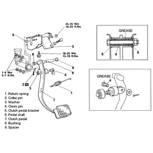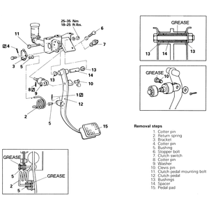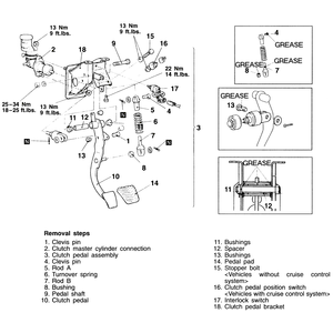 | Fig. 5: Clutch pedal removal and installation — 1992–95 Monteros |