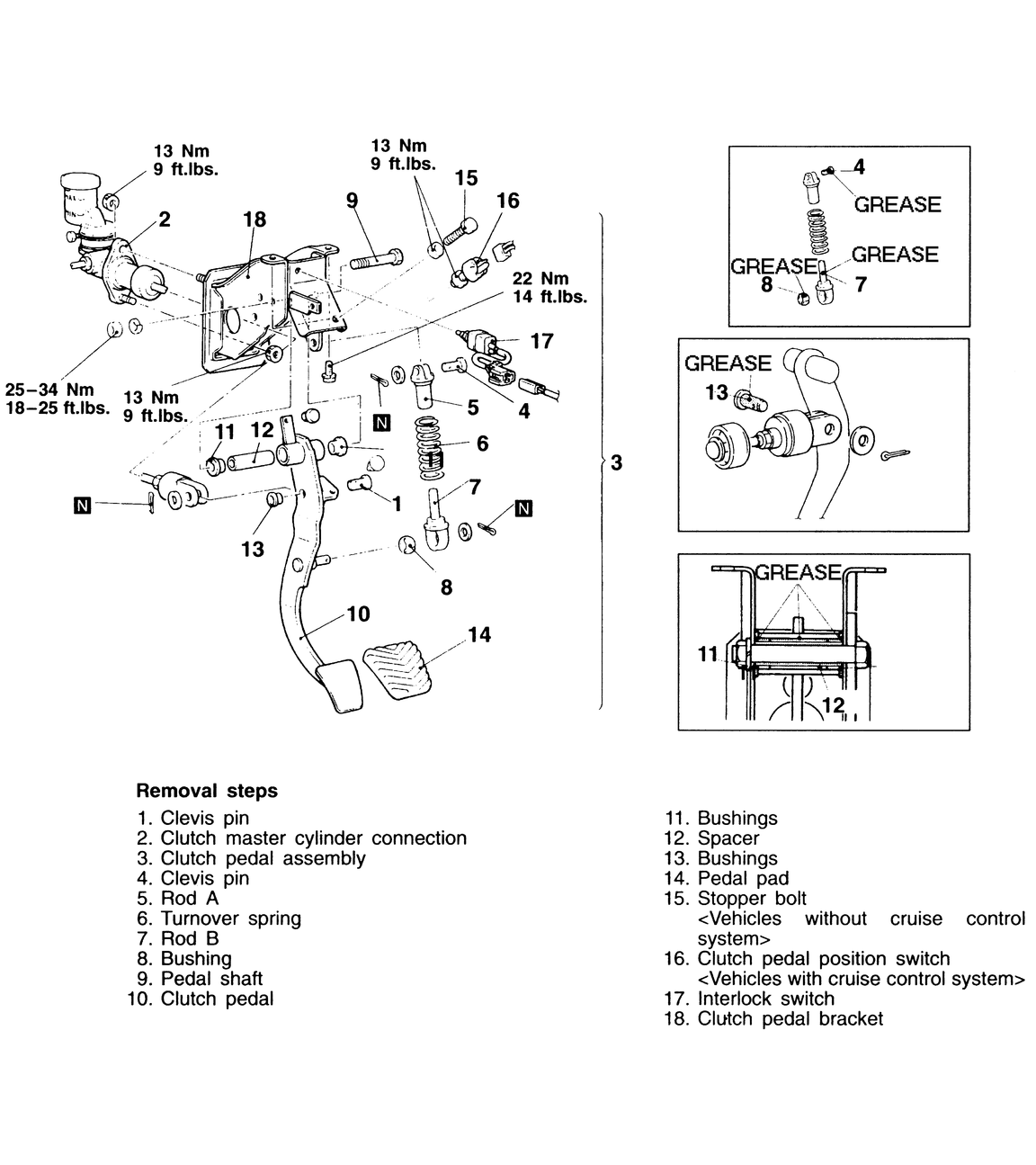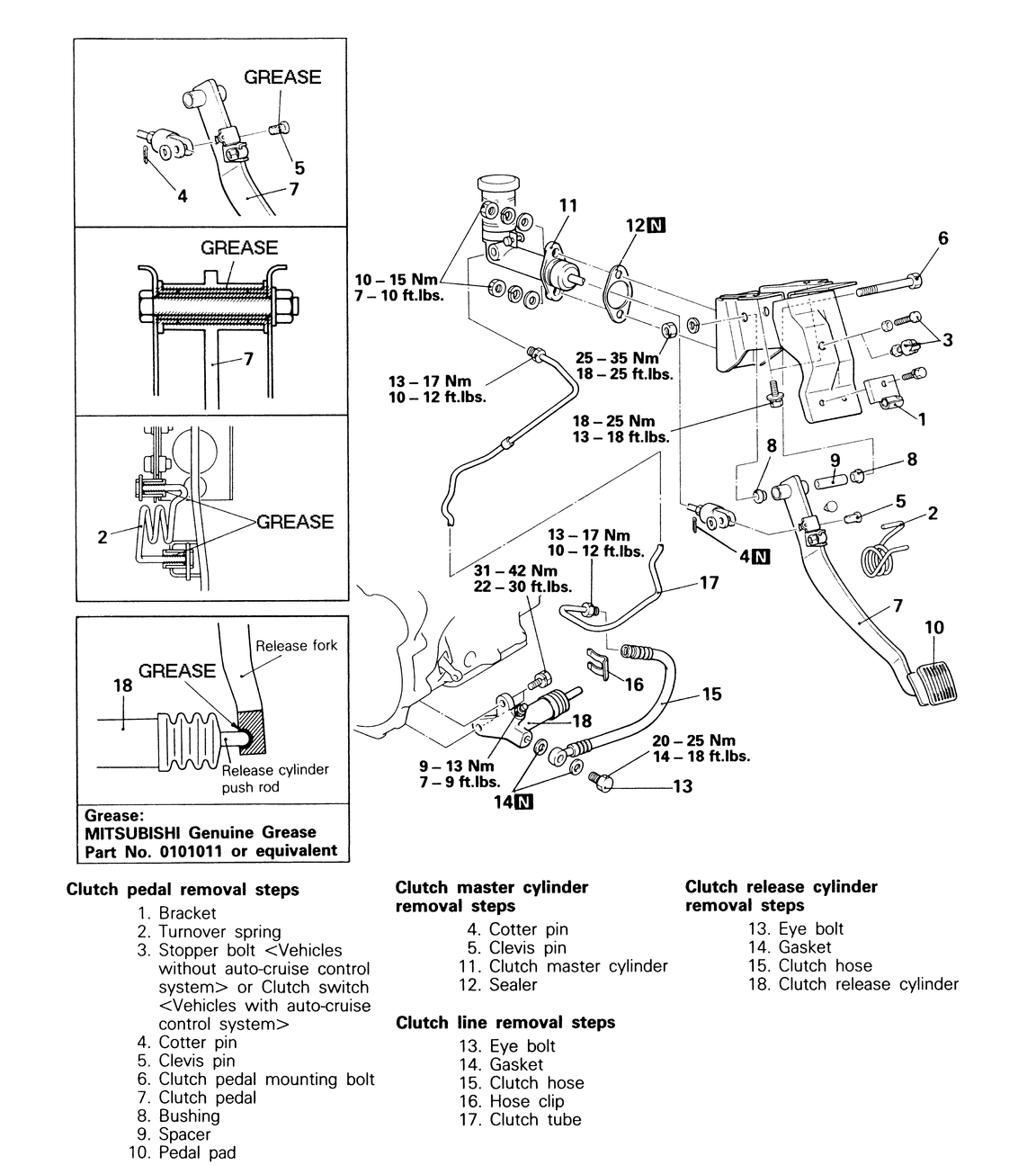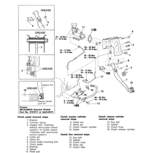 | Fig. 4: Clutch pedal removal and installation — 1990–91 Monteros equipped with 3.0L engines |