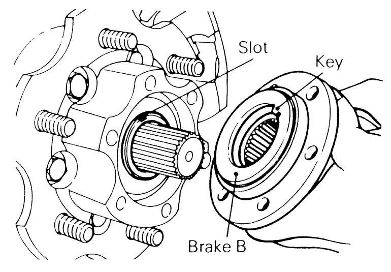 | Fig. 3: When assembling the free-wheeling hub assembly onto the spindle, line the key and the key slot up — automatic free-wheeling 4WD systems |