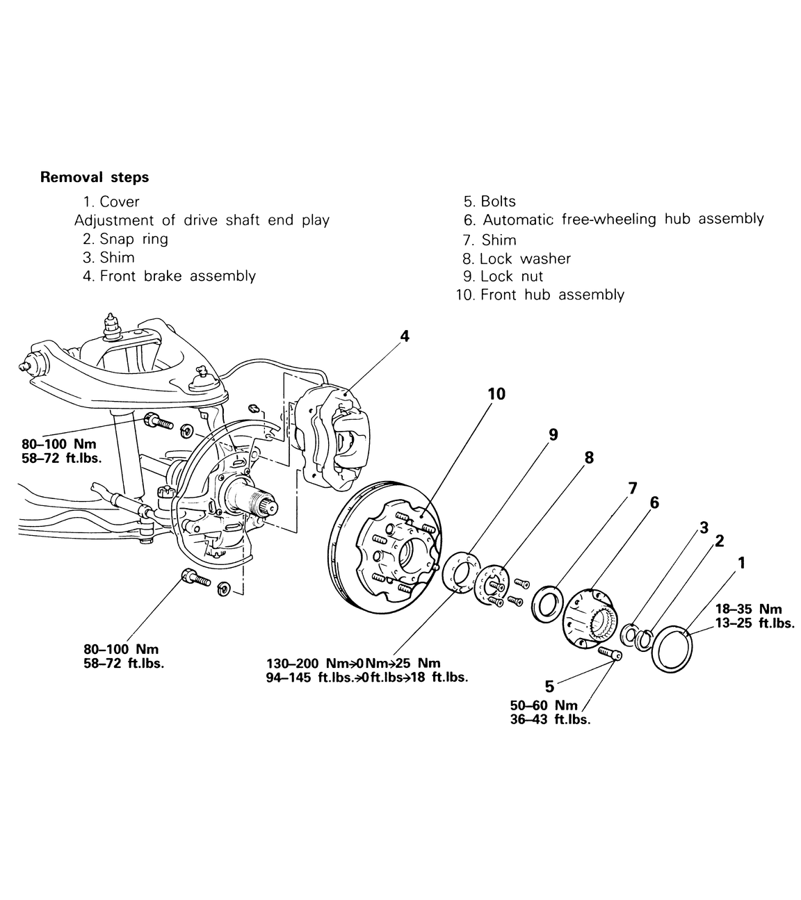 | Fig. 1: Axle hub and free-wheeling hub assemblies' removal and installation — automatic-change 4WD systems |