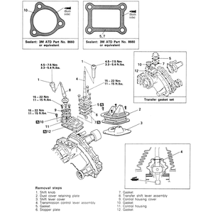 - Remove the transfer shift lever assembly from the control housing.