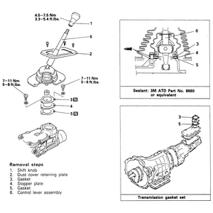 - Remove the three mounting bolts from the shift lever assembly.