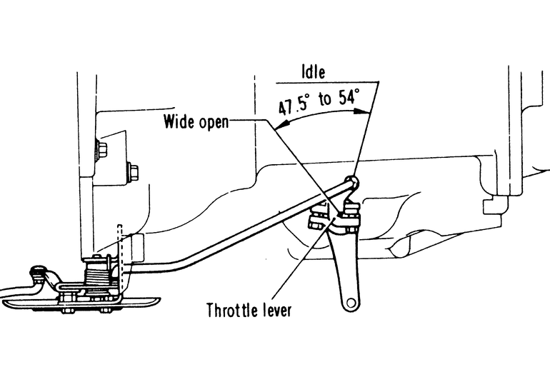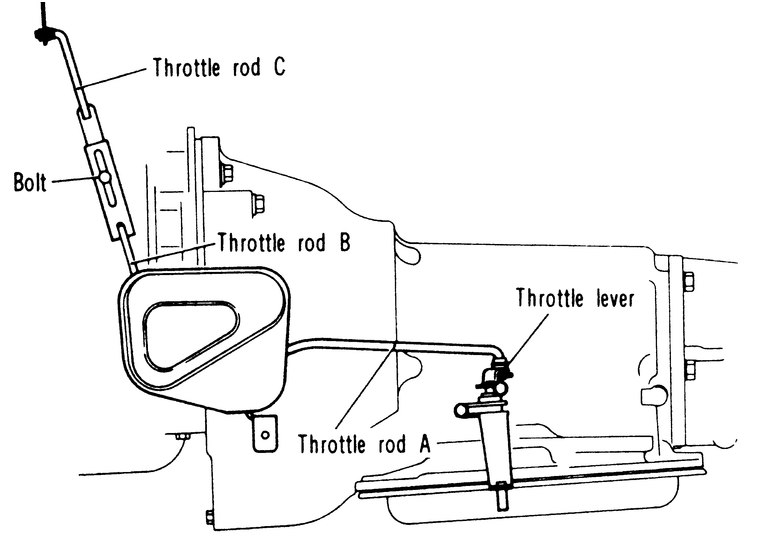 | Fig. 2: Check the movement range of the throttle lever on the transmission when finished adjusting the rods |