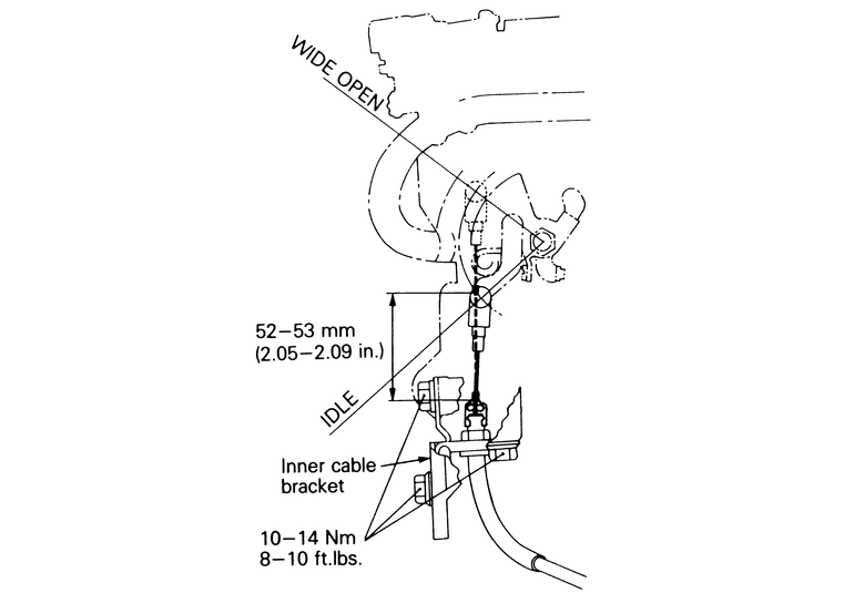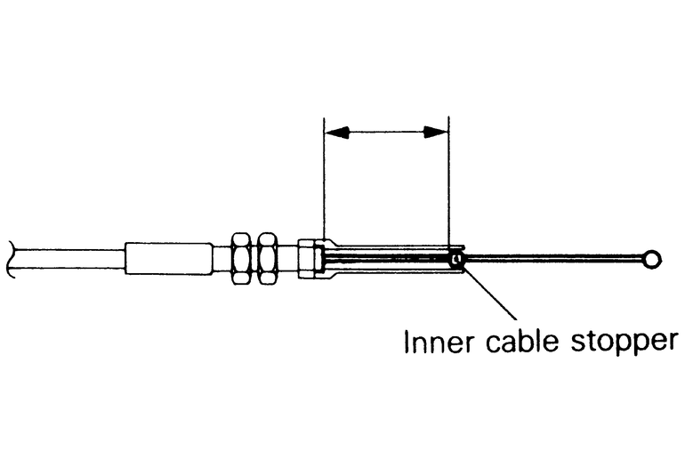 | Fig. 7: Once finished with the adjustment, check the clearances on the engine end of the cable |
