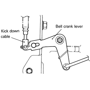 | Fig. 4: Make sure that the kickdown cable is securely attached to the bell crank lever before adjusting the cable |