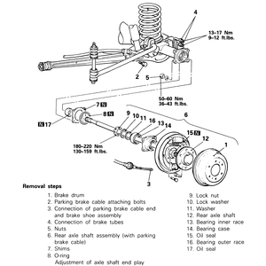 | Fig. 7: Rear axle shaft, bearings and races removal