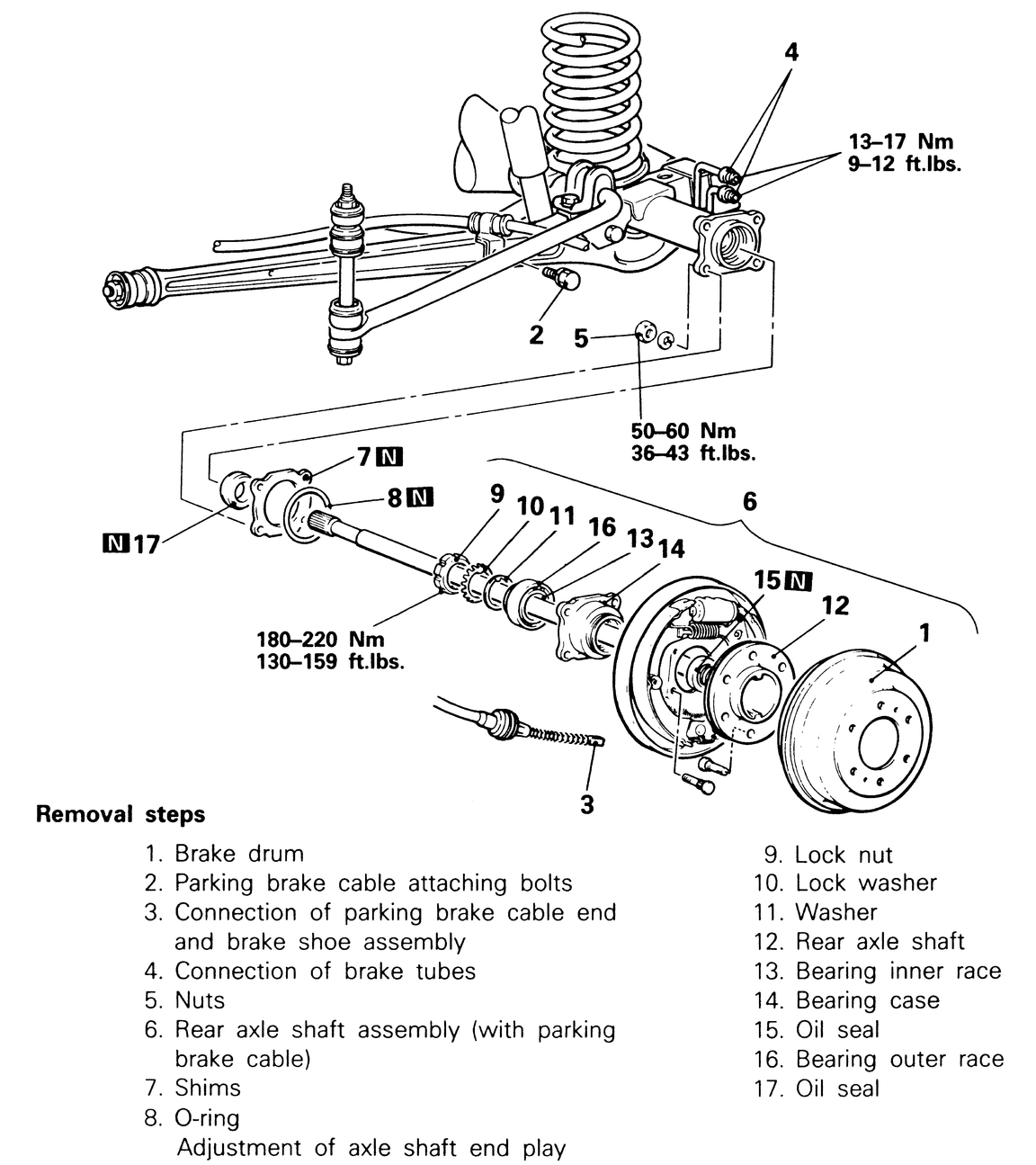 unit. Tighten the four retaining bolts for the axle shafts to 36–43