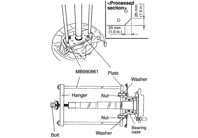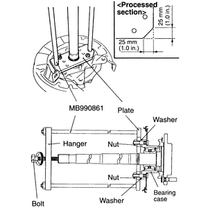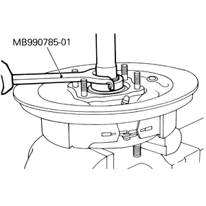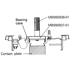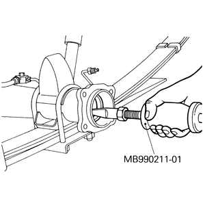 MB990211–01 (slide hammer with a hooked end), if necessary.