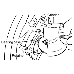 | Fig. 9: Using a grinder, grind the retainer, on one