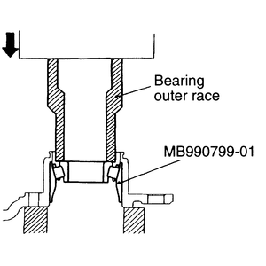 tool MB990799–01 and press to remove the bearing outer race.