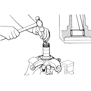 | Fig. 3: Tap the knuckle bearing out of the steering