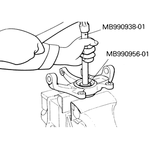 knuckle with the Mitsubishi tools MB990938–01 and MB990956–01 — 4WD