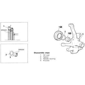 | Fig. 2: Steering knuckle disassembly and assembly components — 4WD vehicles |
