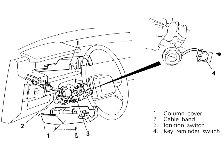 | Fig. 2: The procedure for removing and installing the ignition switch is the basically same for all Monteros and Pick-up trucks |