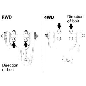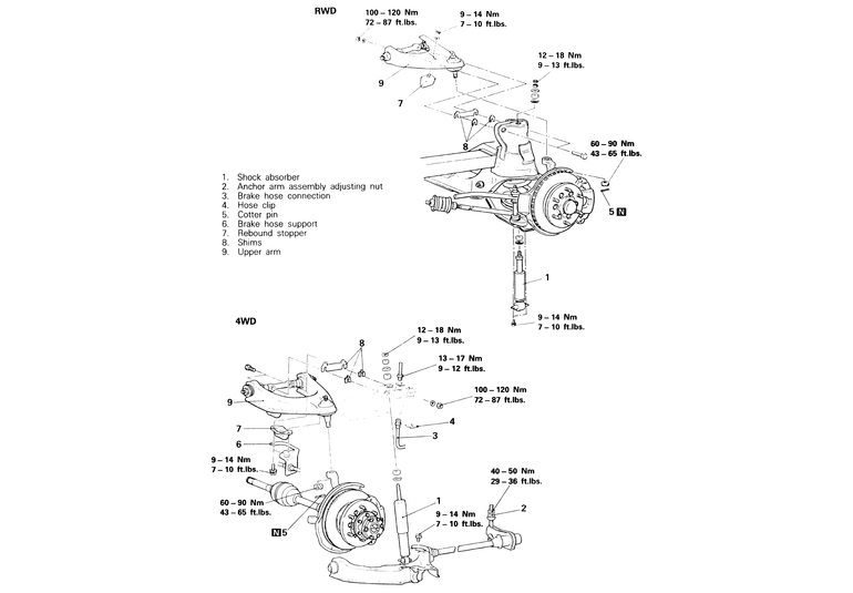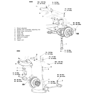 | Fig. 1: Upper control arm removal and installation components — 2WD and 4WD Pick-ups and Monteros |