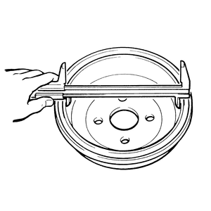 Measure the inside diameter of the drum with an inside micrometer at a number of different positions. Compare it with the specifications listed in the Brake Specifications chart in this section. If the drum is worn past the limit at any point, it must be replaced. Additionally, the diameter should be constant at all points measured. An out-of-round condition may cause vibration under braking.