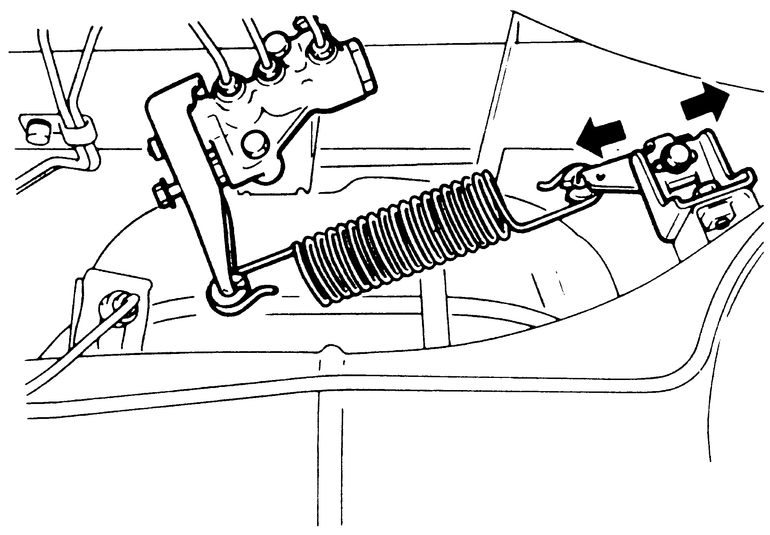 To measure this spring, the vehicle must be unladen and sitting on its wheels on level ground. Do not support any part of the vehicle. Make sure that the lever is not in contact with the stopper bolt and push the lever toward the valve. Measure the distance from the spring hole in the lever arm to the spring hole in the spring support.