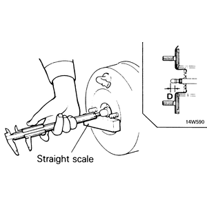 NOTE: Obtain dimension (D) by first placing a straight scale against the edge of the brake booster, then measuring and subtracting the thickness of the straight scale.