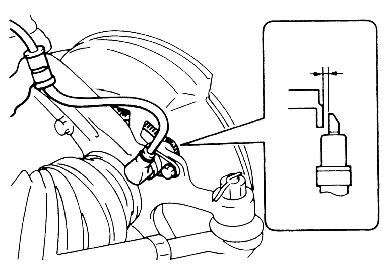 | Fig. 4: After installing the front wheel speed sensor, make certain that the clearance between the sensor and rotor is 0.008–0.040 in. (0.2–1.0mm) |