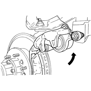 lift the caliper up and secure it in place with a wire or strong cord