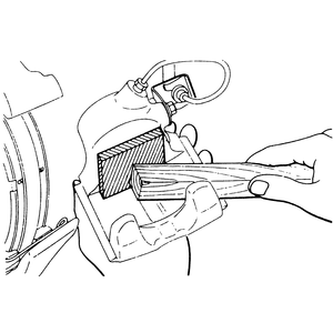 NOTE: Whenever brake pads are replaced, replace them in complete sets; that is, replace the pads on both front wheels even if only one side is worn.
