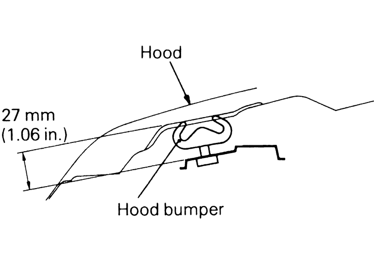 | Fig. 3: Install the hood stoppers on Monteros so that the top of the stopper is 1.06 in. (27mm) from its mounting surface |
