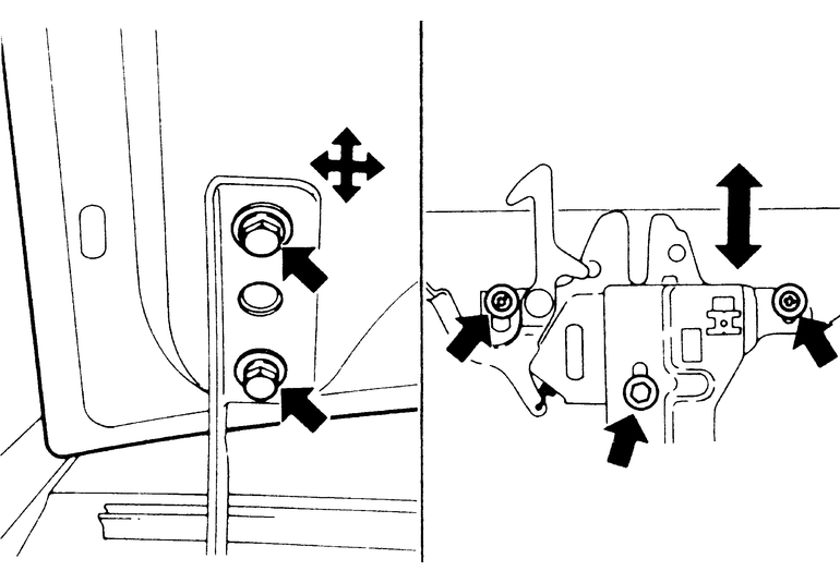 | Fig. 1: The hood latch and hinges can be moved to adjust the position of the hood and closing characteristics |