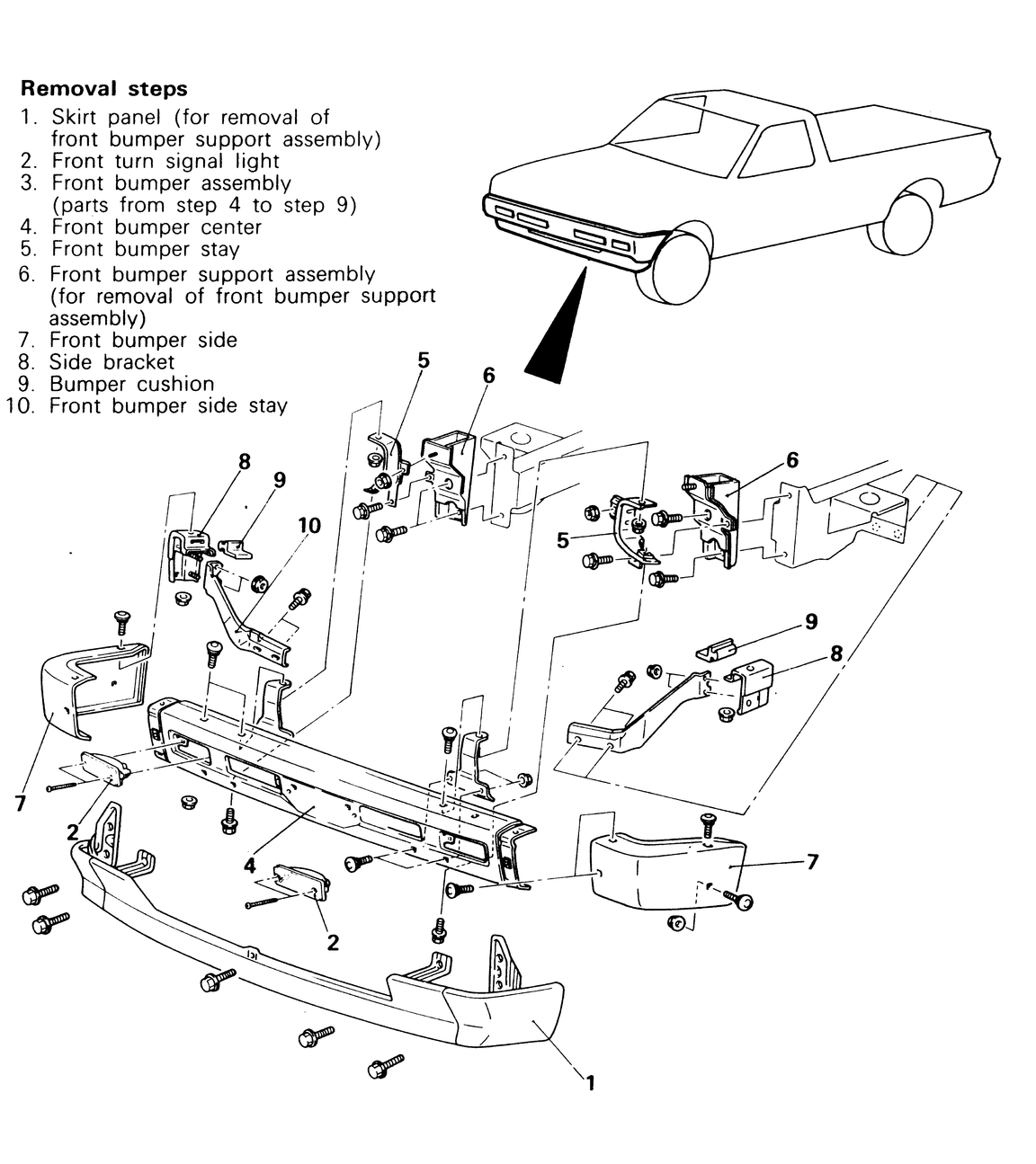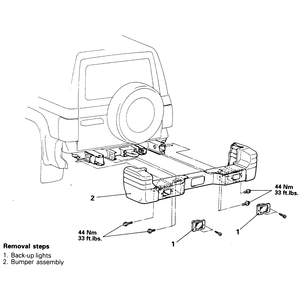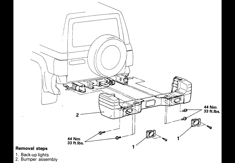 Not all Pick-ups are delivered with rear bumpers. Those that do have bumpers at the rear may have either the optional Mitsubishi bumper or one of a number of aftermarket products. In general, the rear bumper simply bolts to the frame, but the style and manufacture of the bumper may affect its installation.