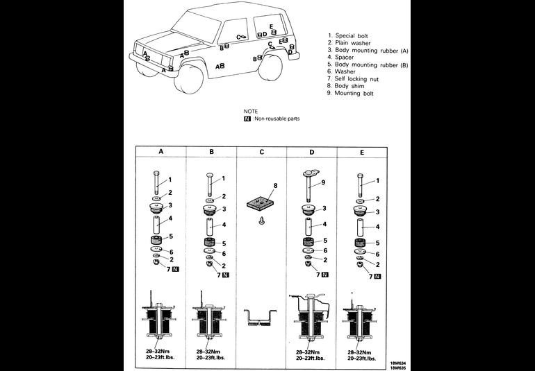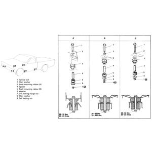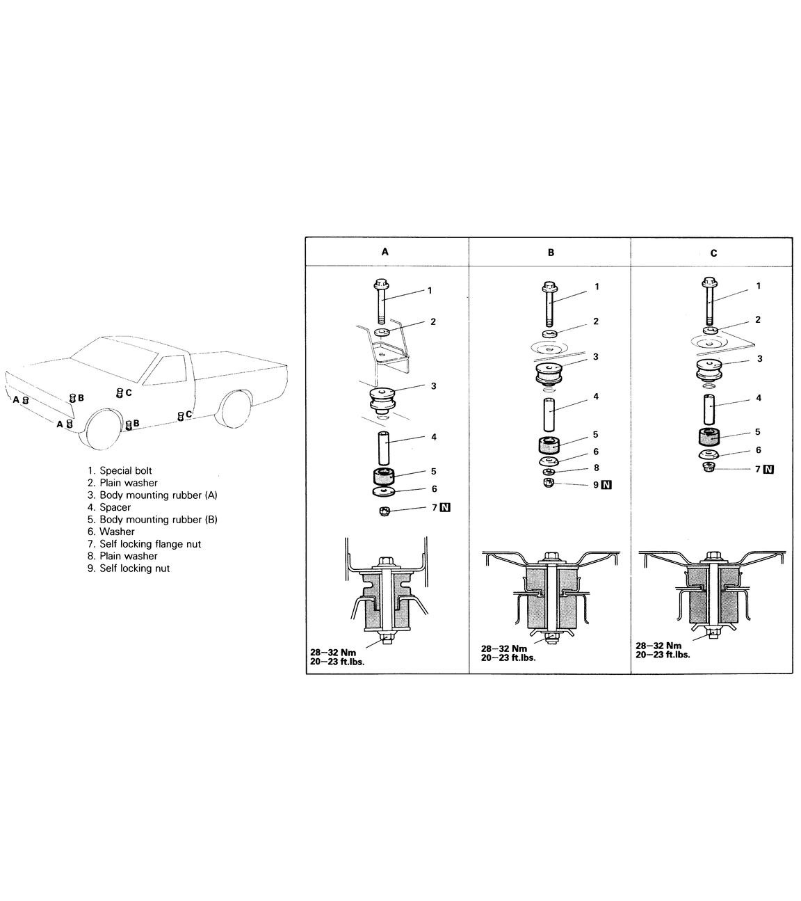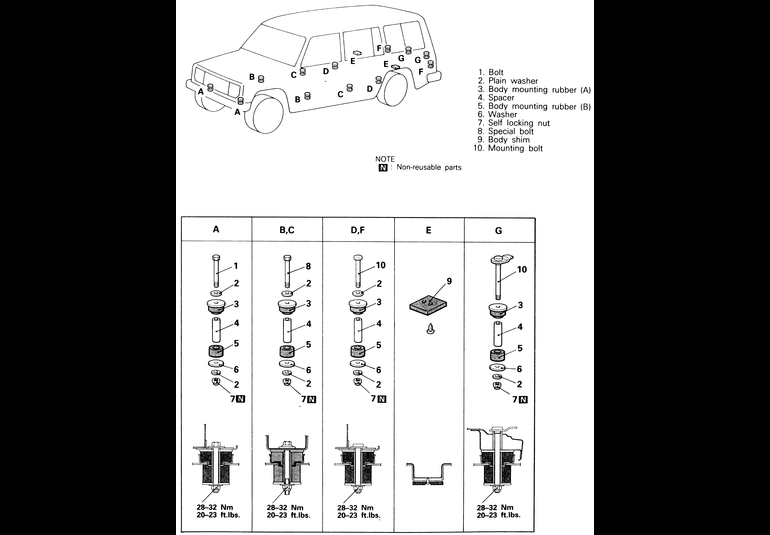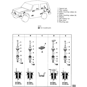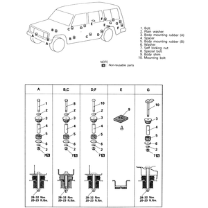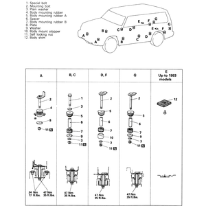 | Fig. 3: Body mounting positions and components — 1983–91
