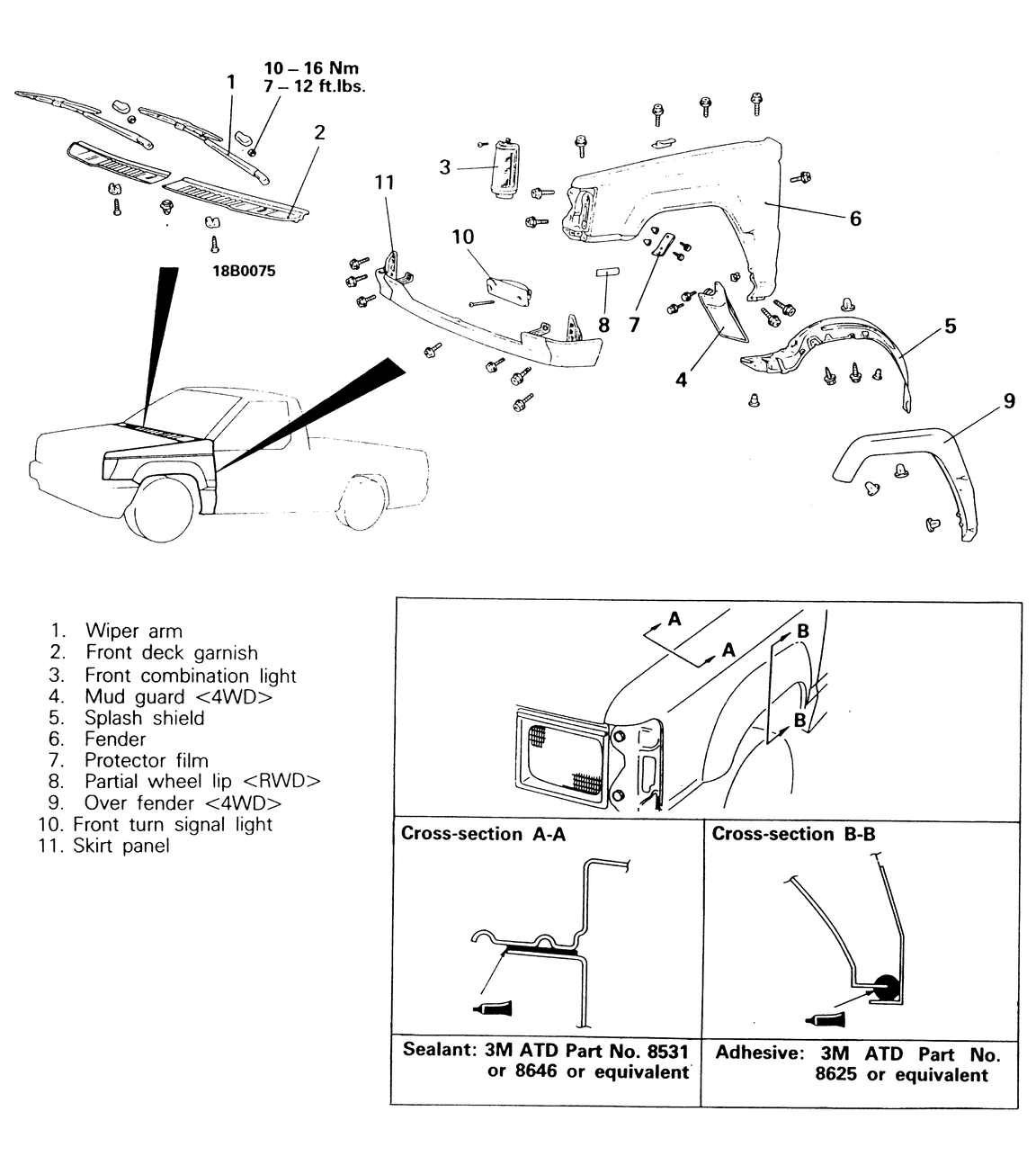 - On 4WD Pick-ups, remove the front mud flap from the lower fender.