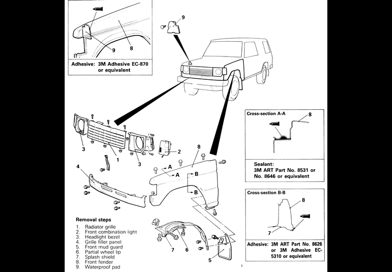 wheel lip (2WD) or over fender (4WD) can be removed from the fender. To remove