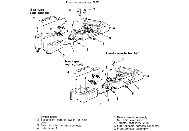 - Remove the floor console and/or center console, depending on equipment